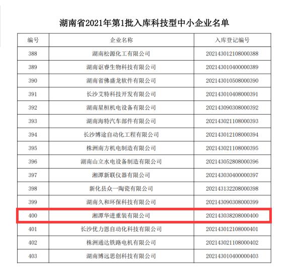 根據(jù)《科技型中小企業(yè)評價辦法》(國科發(fā)政〔2017〕115號)和《科技型中小企業(yè)評價辦法工作指引(試行)》(國科火字〔2017〕144號)要求,經(jīng)審查、公示通過,華進(jìn)重裝等788家企業(yè)入選2021年第一批擬入庫科技型中小企業(yè)名單。