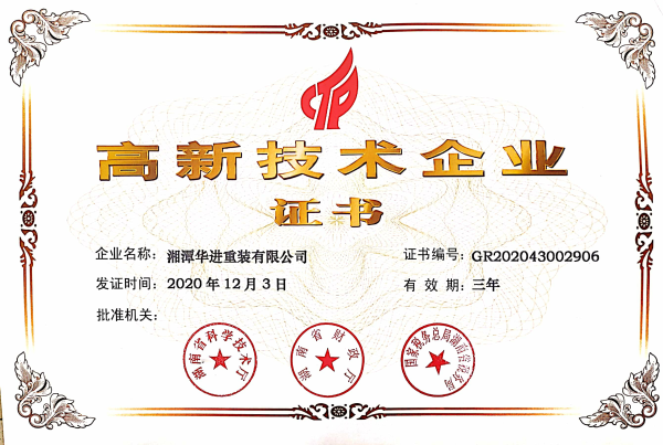 近日,湘潭華進重裝有限公司收到《高新技術(shù)企業(yè)證書》。本次系華進重裝首次申請高新技術(shù)企業(yè)認定,華進重裝通過認定連續(xù)三年內(nèi)(2020-2022年度)將享受高新技術(shù)企業(yè)的相關(guān)稅收優(yōu)惠政策。