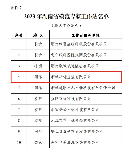 為加強湖南省專家工作站建設(shè)績效評價工作,提高工作站運行質(zhì)量,促進人才培養(yǎng)和科技成果轉(zhuǎn)化,湖南省科協(xié)于2023年6月2日組織專家對63家省級專家工作站進行了 2022 年度考核評審。經(jīng)過從專家在站工作情況、建站單位保障情況、建站成效、進站專家滿意度、是否產(chǎn)生重大技術(shù)突破成果等五個方面進行綜合評價,結(jié)合集中評審和現(xiàn)場抽查情況,考核結(jié)果優(yōu)秀且排名靠前的湘潭華進重裝科技股份有限公司等10 家專家工作站,評選為“2023 年湖南省模范專家工作站”。